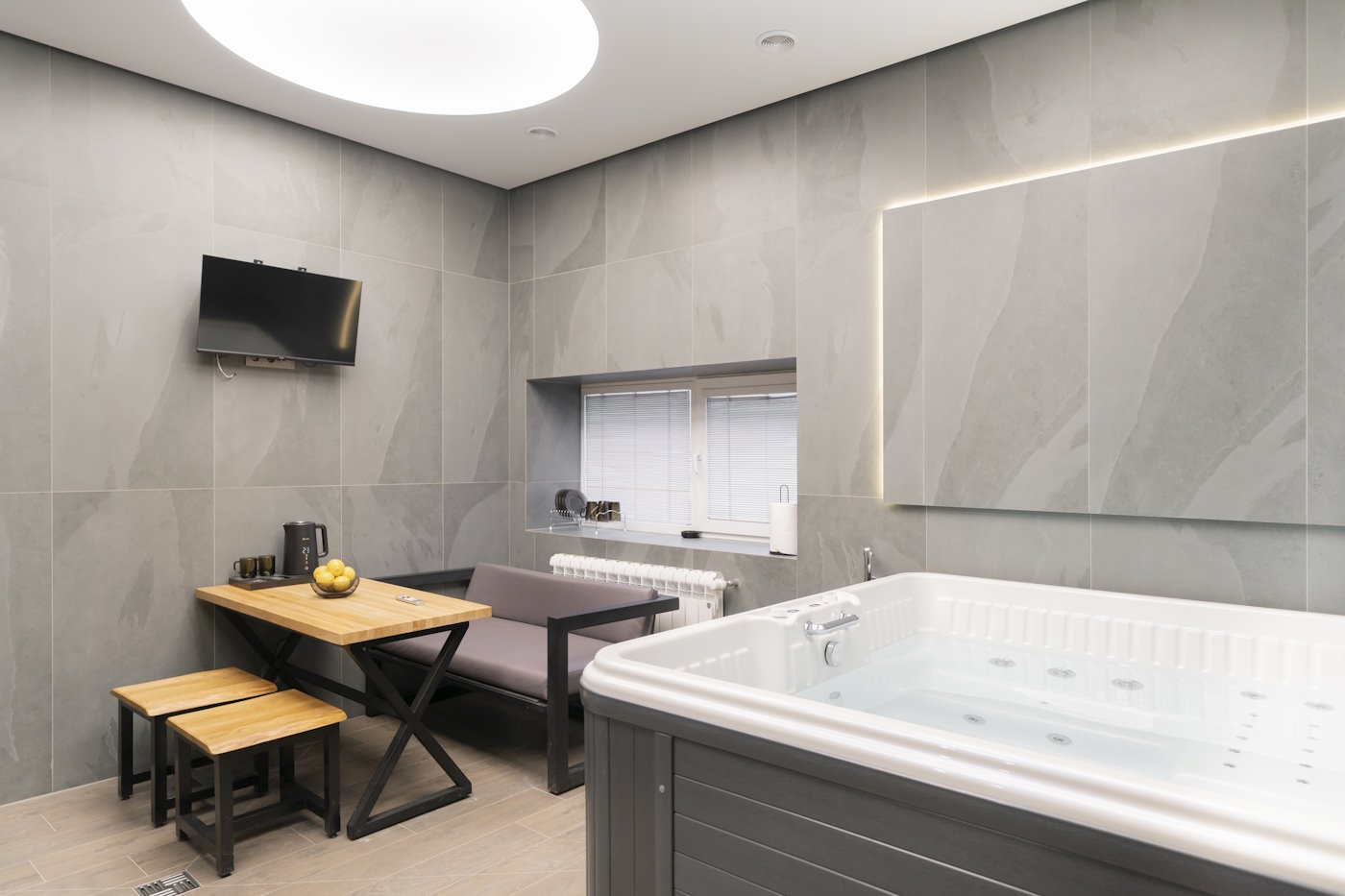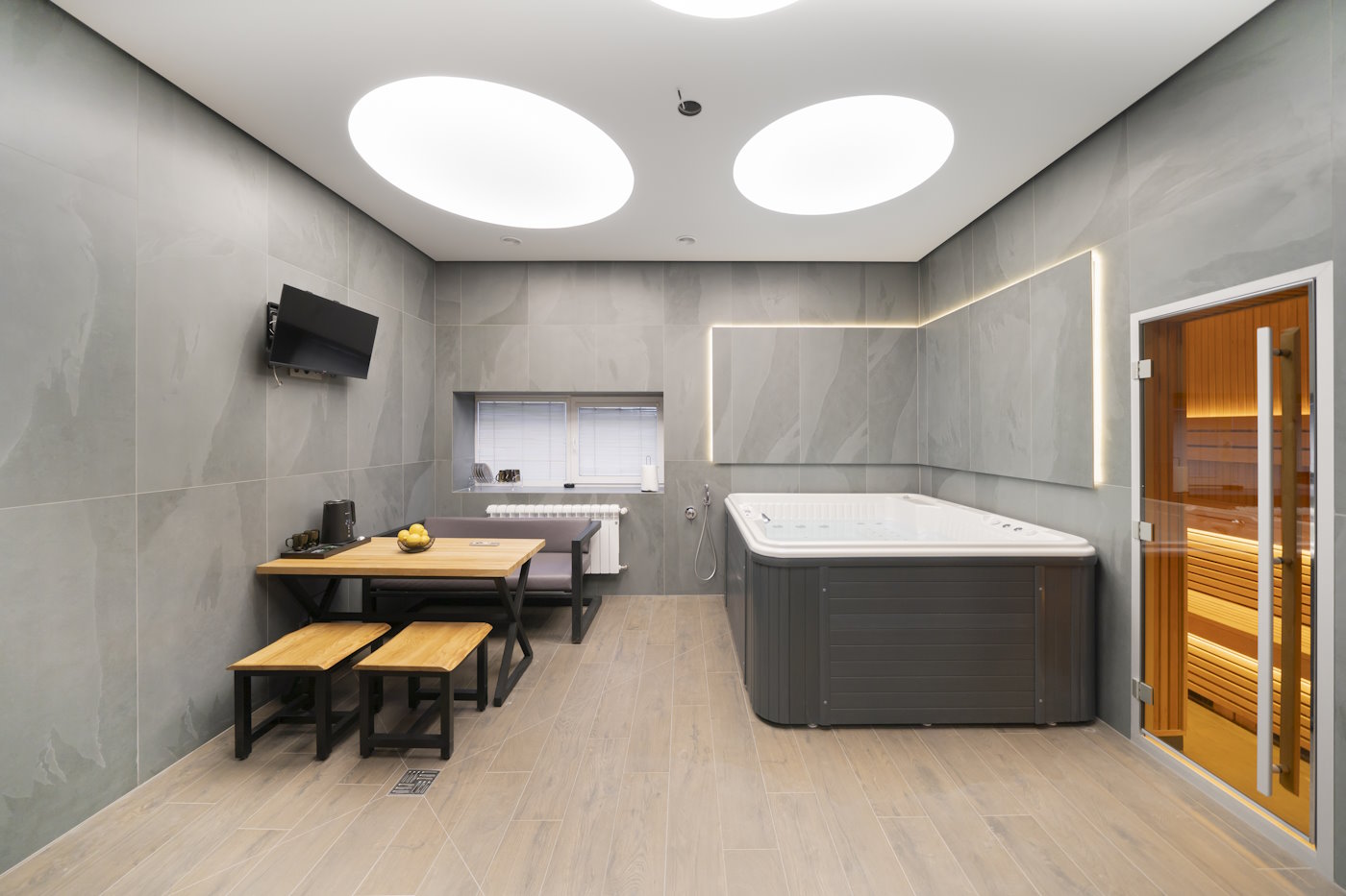 Здесь есть все для уюта и комфорта: современная удобная парилка, джакузи, в который приятно расслабиться и помечать о чем то хорошем, красиво обставленное место для дружеского отдыха.